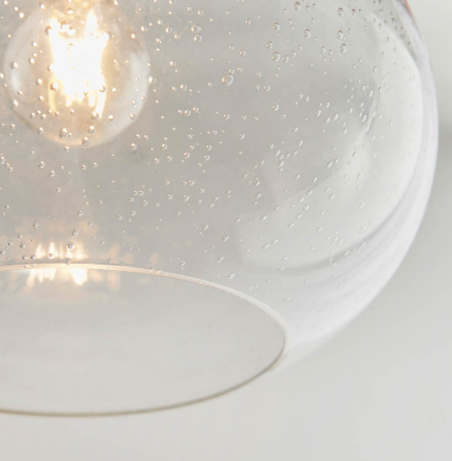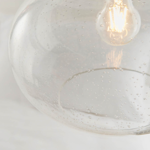 A simple clear glass shade with a bubble effect to the glass. Team with one of our cable sets for a complete fitting.