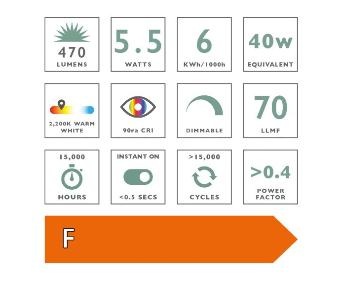 This LED Large Globe GLS bulb by Dar Lighting consumes just 5.5W of electricity, making it a highly energy-efficient alternative to a traditional incandescent bulb. The bulb is dimmable and compatible with modern dimmers designed for LED light sources. Additionally, it can be used with a standard ON/OFF switch if dimming functionality is not required.